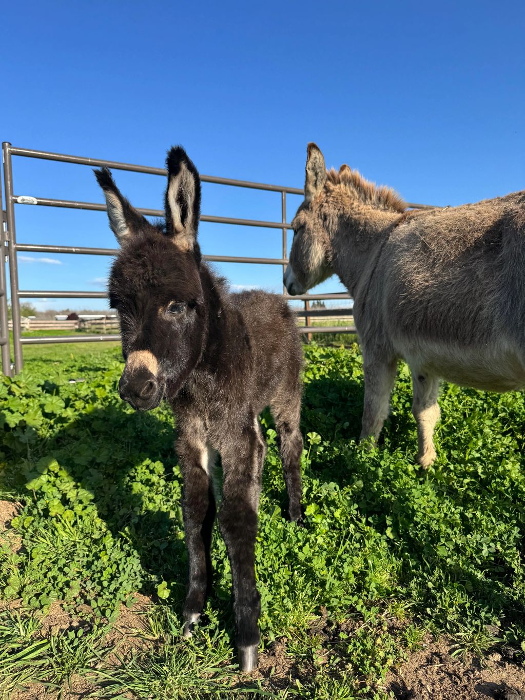 Born May 2025. Juice Box is a chocolate Jack foal out of our Jenny Paloma. He could be your next herd sire or opt to have him castrated.